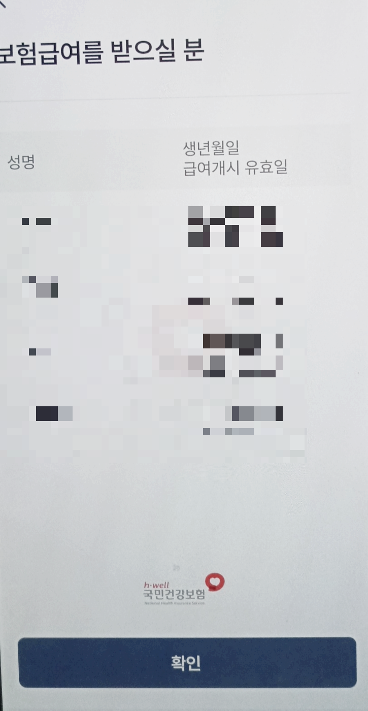 4. 개인정보 보호가 된다는 내용, 건강보험증 조회 가능, QR코드로 병원 진료 가능하다는 내용이므로 모두 확인을 클릭합니다.